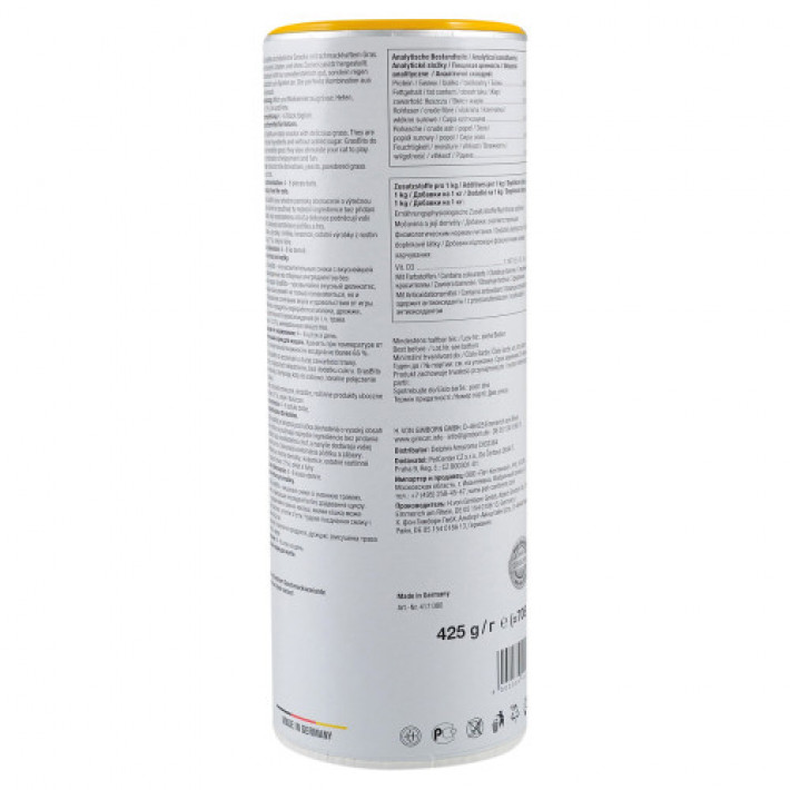 Склад: молоко та молочні продукти, дріжджі, порошок трави (12%), олії та жири.