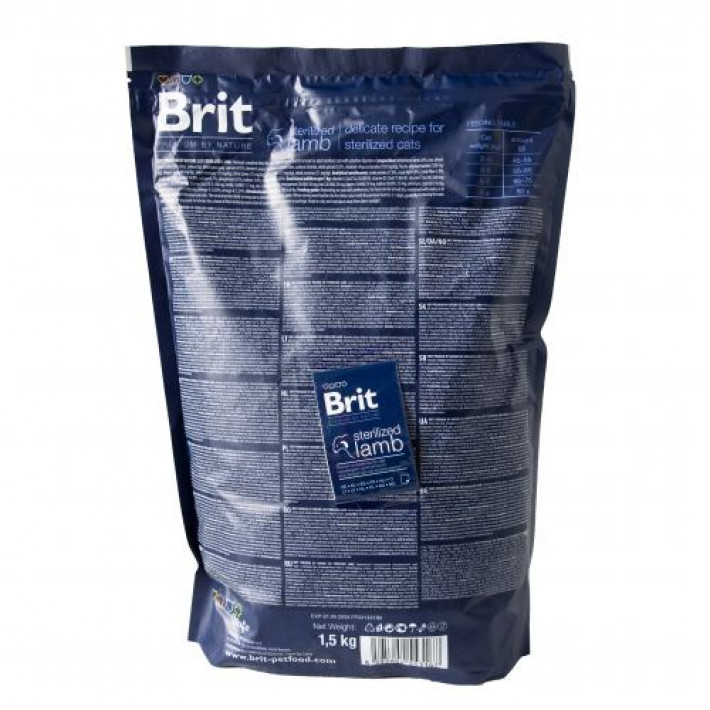 Сухий корм Brit Premium Cat by Nature Sterilized Lamb для стерилізованих котів, з ягням, 1500 г