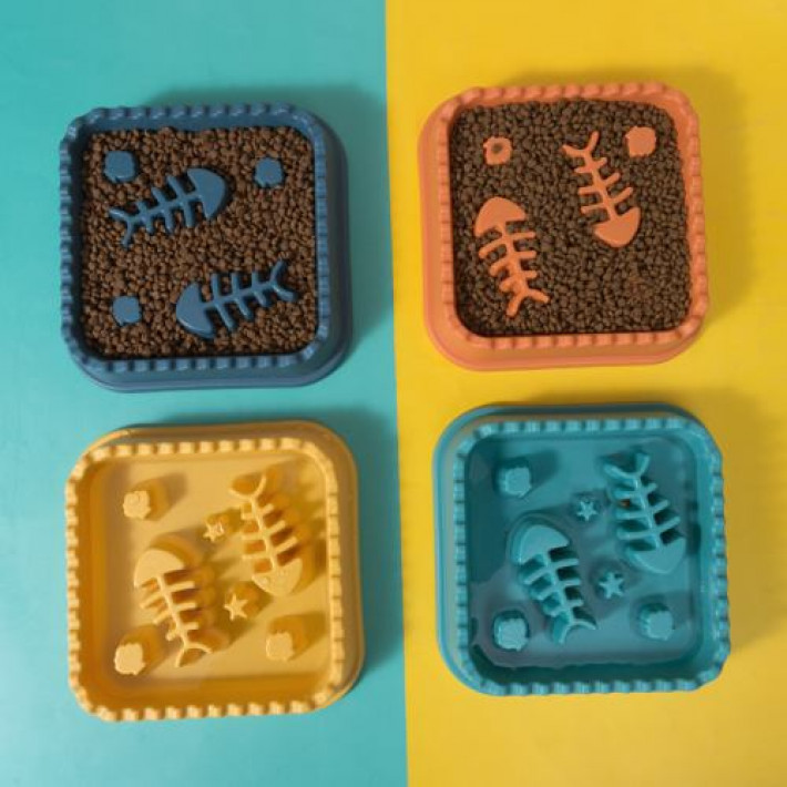 Миска для котів WahoPet для повільного годування, з рибками, блакитна