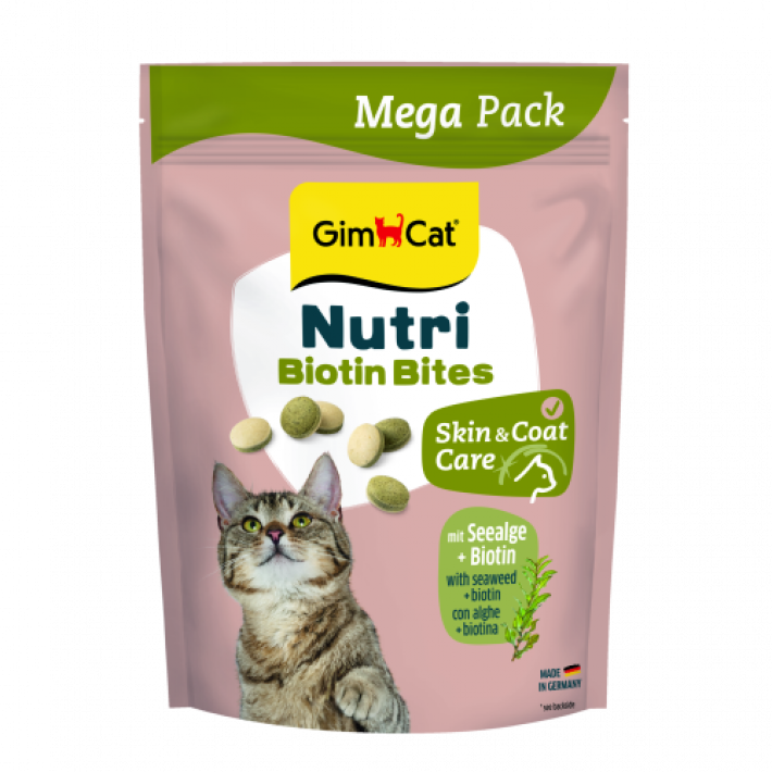 Вітаміни GimCat NUTRI BIOTIN BITES для котів для покращення стану шерсті та шкіри 425г