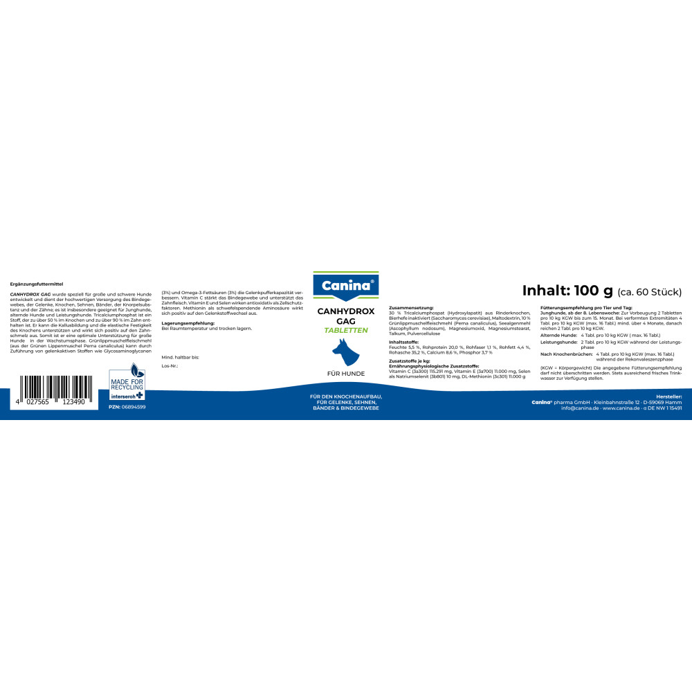 - Якість: Оригінальна продукція Canina для собак, вироблена в Німеччині.