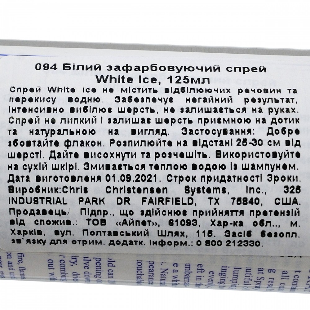 Спрей Chris Christensen White Ice для білої шерсті собак та котів, 125 мл
