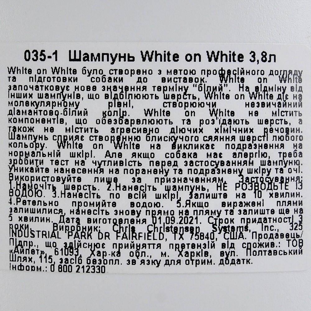 Шампунь Chris Christensen White on White для білої шерсті 3,8 л
