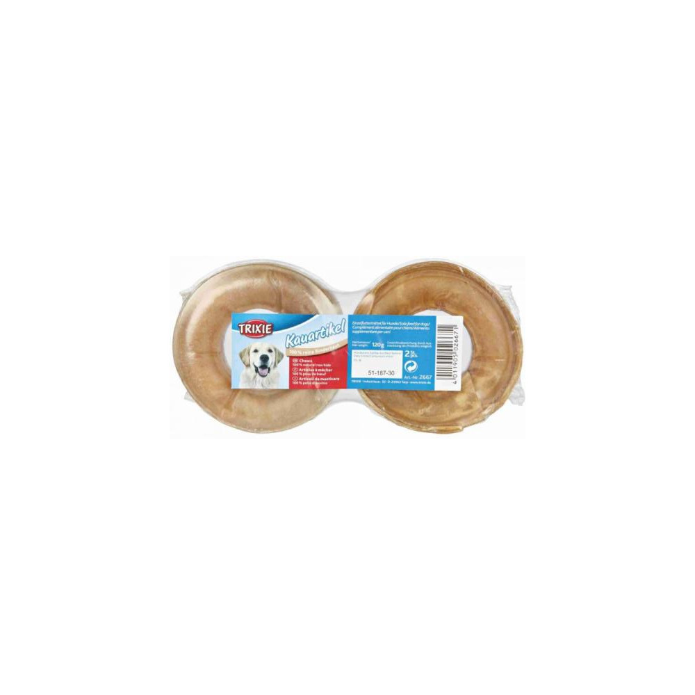 Ласощі Trixie для собак Кільце жувальне — це ідеальний вибір для власників, які шукають якісні товари для домашніх улюбленців. Це сушене ласощі, виготовлене з натуральної сиром'ятної шкіри, спеціально розроблене для задоволення природного інстинкту гризіння у вашого вихованця.