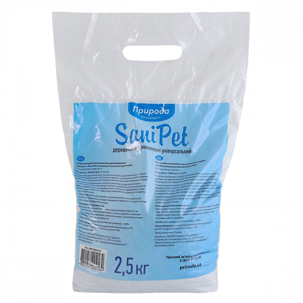 Наповнювач Природа Sani Pet Універсальний — це ідеальний вибір для власників, які цінують натуральність та ефективність. Цей деревний наповнювач для котів виготовлений в Україні та забезпечує високий рівень гігієни у вашому домі.