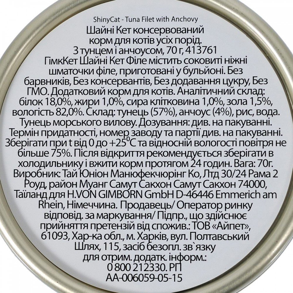 - Натуральний склад: Використання добірного філе тунця та анчоусів забезпечує високу смакову привабливість.