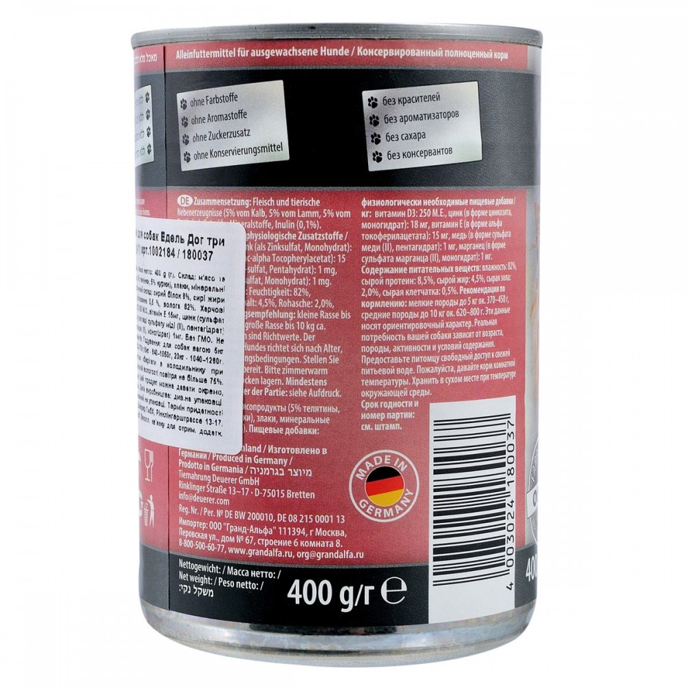 Вологий корм Edel Cat для собак три види м'яса — це збалансоване харчування преміум-класу, створене для задоволення потреб вашого улюбленця. В асортименті інтернет-магазину Paddington ви знайдете лише найкращі товари для домашніх улюбленців, і цей продукт є чудовим вибором для щоденного раціону.