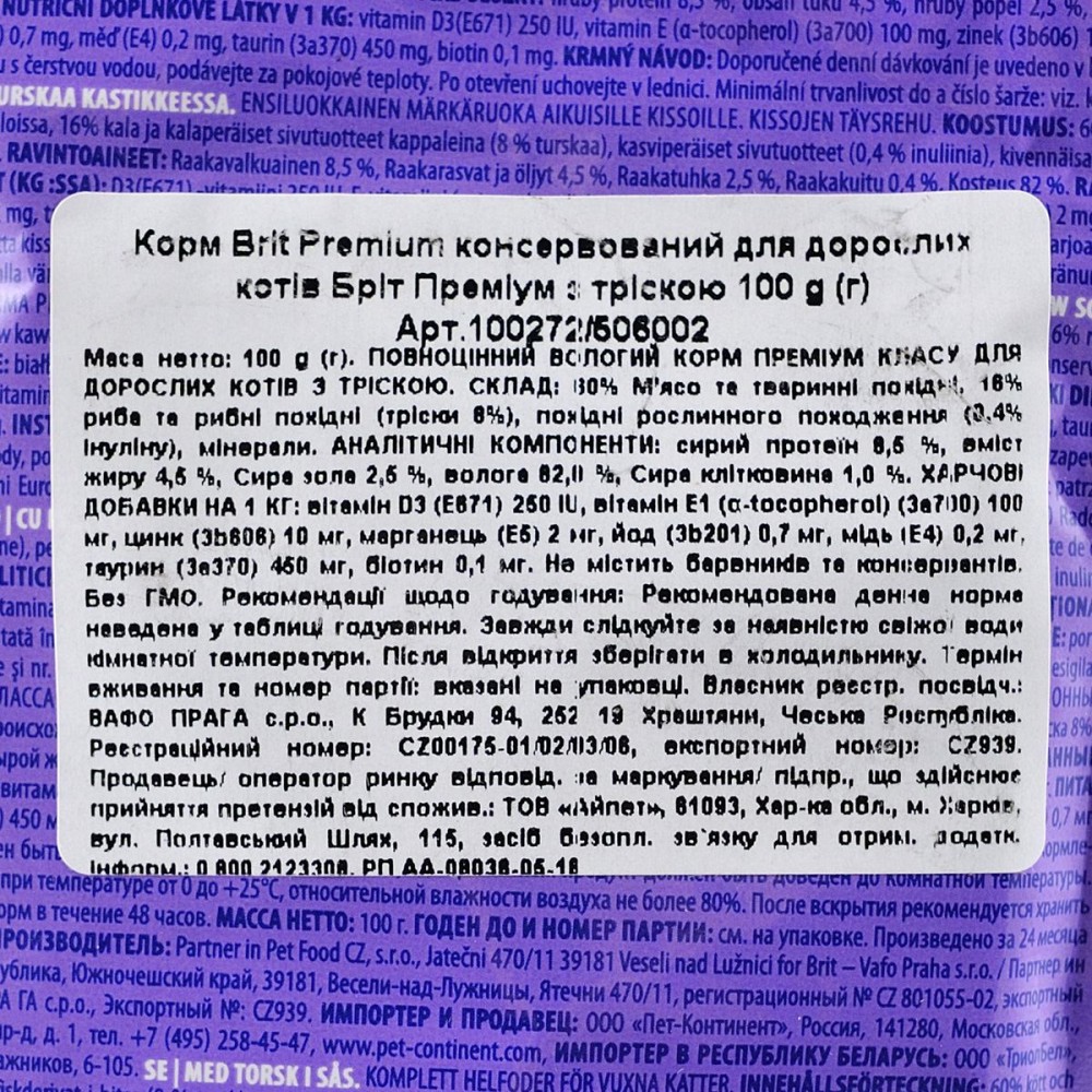 Вологий корм Brit Premium Cat Cod Fish для котів з тріскою, 100 г