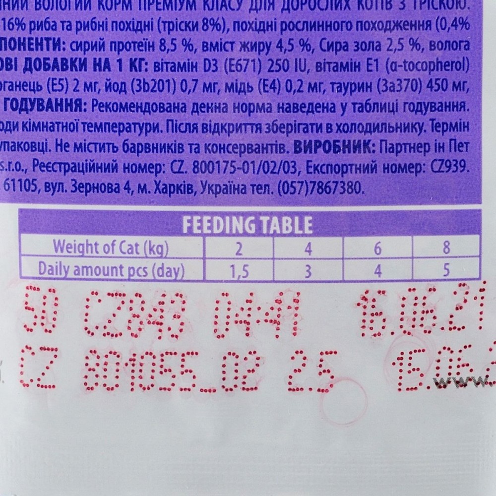 Цей вологий корм для котів виготовляється у Чехії та являє собою апетитні шматочки в желе, які обов'язково сподобаються навіть найвибагливішим гурманам. Основу раціону складає ніжна тріска, що забезпечує організм тварини необхідними білками та мікроелементами.