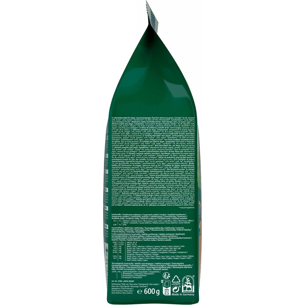 Цей німецький корм для гризунів виготовлений за унікальною рецептурою, що поєднує гранули та зернові культури. Такий збалансований склад для дегу допомагає підтримувати ідеальну вагу та здоров'я зубів тварини. Товари для гризунів від бренду Vitakraft відомі своєю безпекою та натуральністю інгредієнтів.
