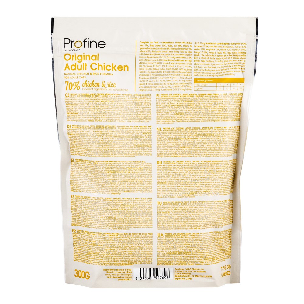 Цей сухий корм для котів ідеально підходить для щоденного годування. Обираючи Profine для котів, ви забезпечуєте свого вихованця всіма необхідними вітамінами та мінералами. Це повноцінне харчування для дорослих котів, яке гарантує чудовий смак та відмінне самопочуття. Замовляйте якісний корм з куркою для котів у зручній упаковці 300 г прямо зараз.