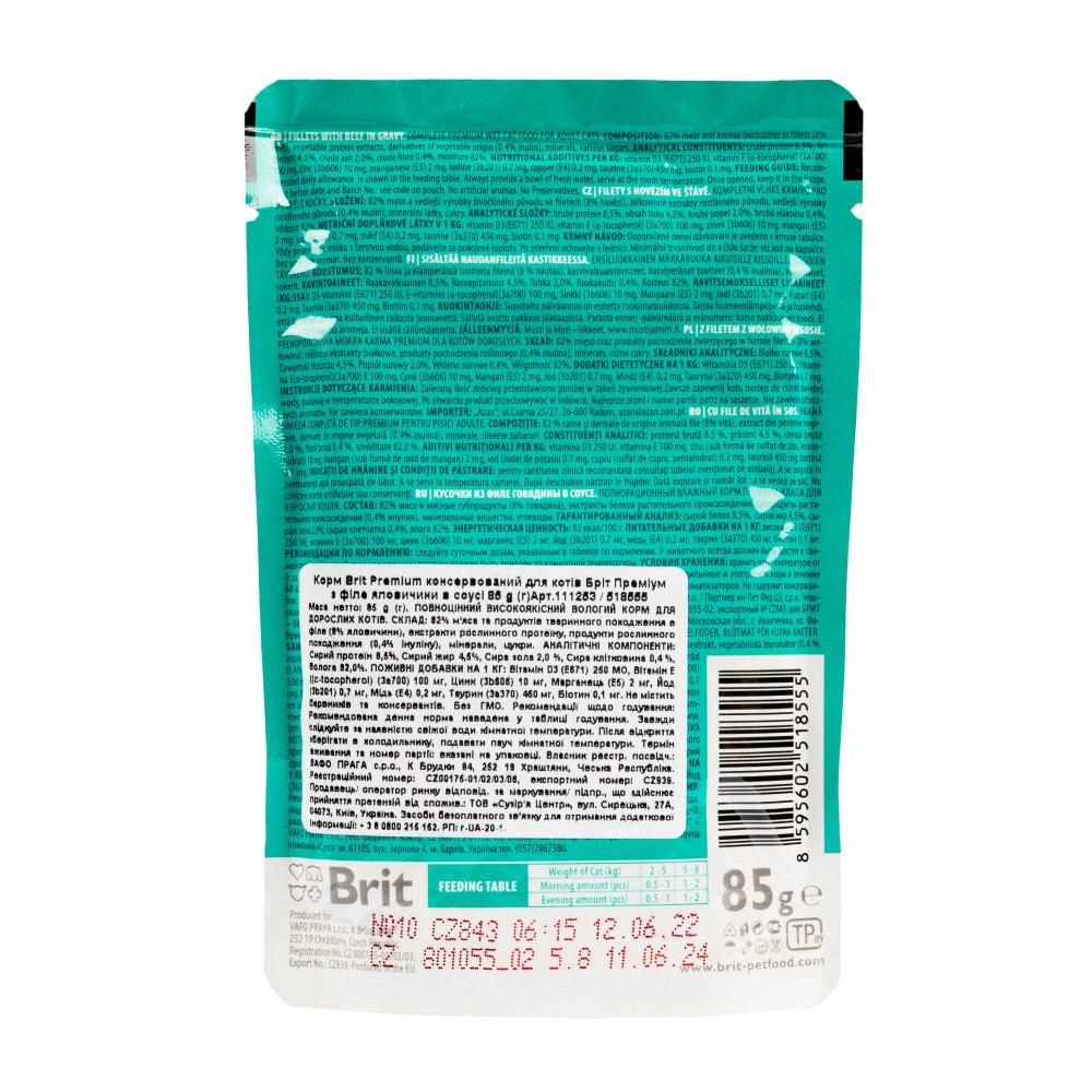 Вологий корм Brit Premium Cat Beef Fillets Gravy для котів, 85 г