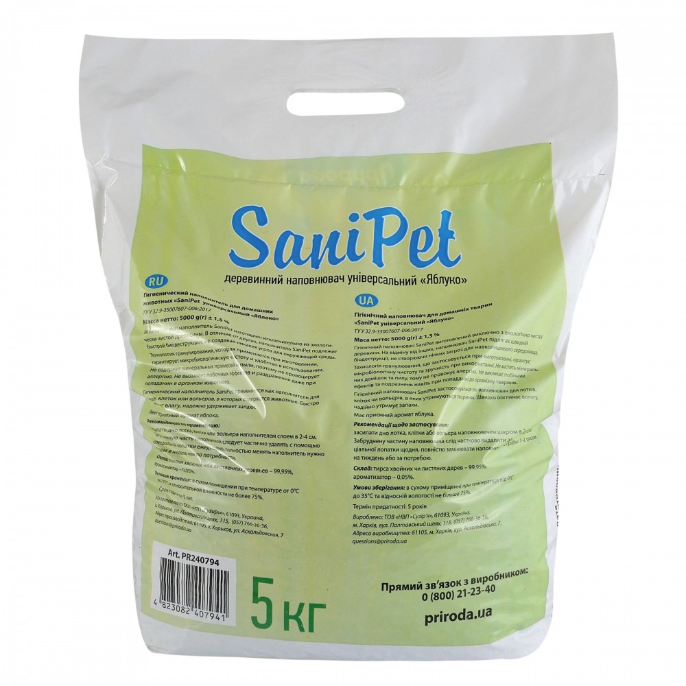 Наповнювач Природа Sani Pet Яблуко — це високоякісний деревний наповнювач для котячих туалетів, який забезпечує максимальну гігієну та комфорт вашого улюбленця. В асортименті інтернет-магазину Paddington цей продукт займає особливе місце завдяки своїм відмінним поглинаючим властивостям.