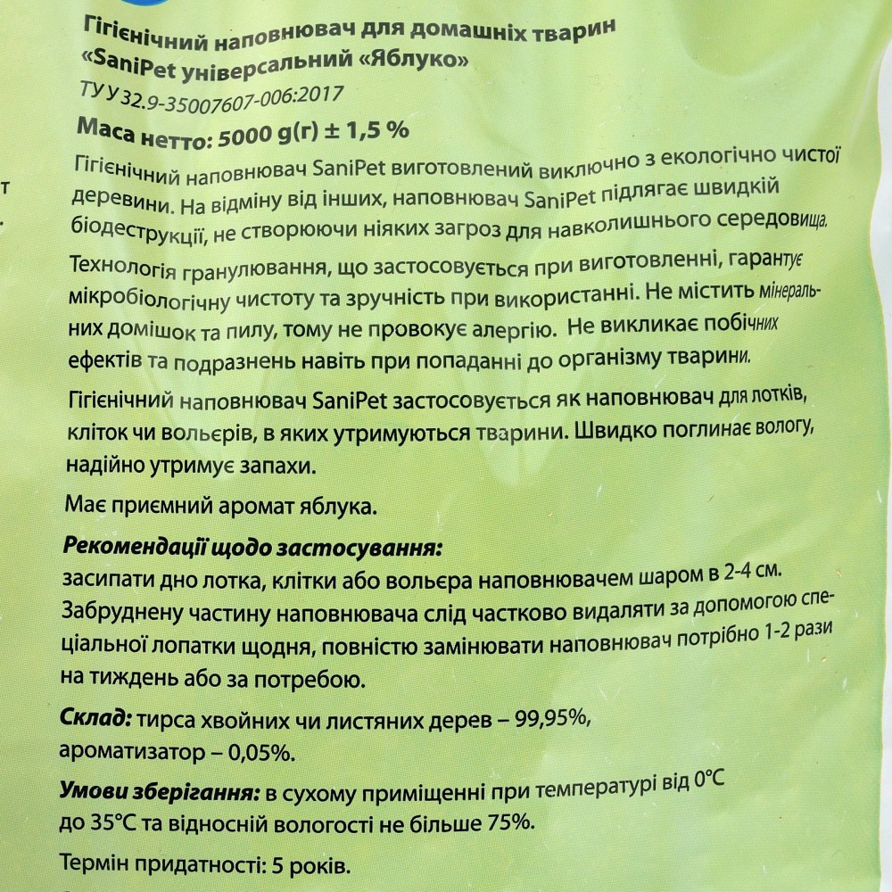 Наповнювач Природа Sani Pet Яблуко деревинний 5 кг