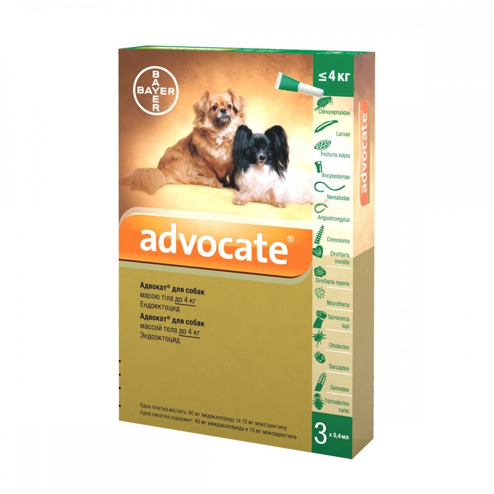 Адвокат для собак до 4 кг (3 піпетки по 0,4 мл) від Bayer