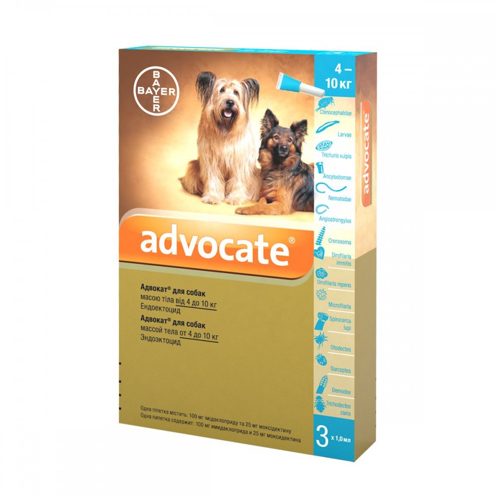 Адвокат для собак 4-10 кг (3 піпетки) - Bayer