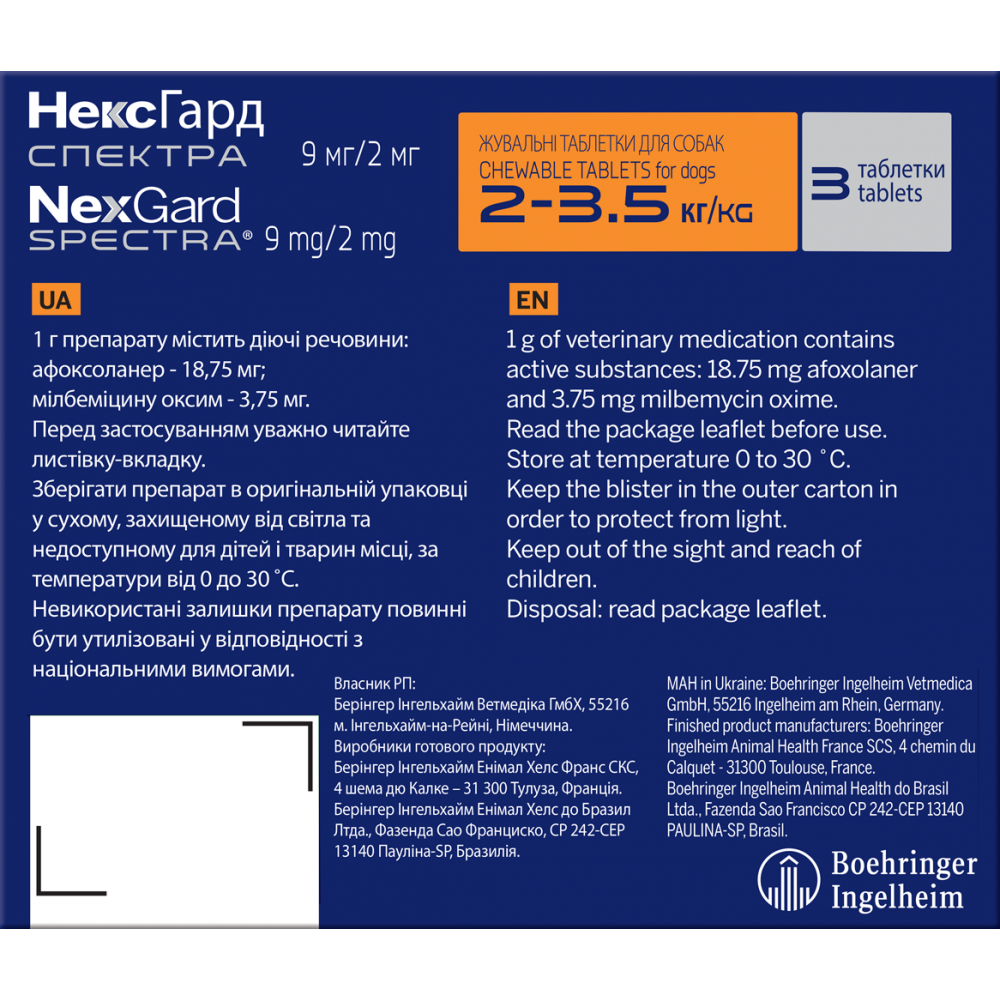 Нексгард Спектра (NexGard Spectra) XS від бренду Boehringer Ingelheim — це сучасний та високоефективний інсектоакарицид та антигельмінтик, розроблений спеціально для собак вагою від 1.25 до 3.5 кг. В асортименті інтернет-магазину Paddington цей препарат є одним із найбільш затребуваних рішень для комплексного захисту вашого улюбленця.