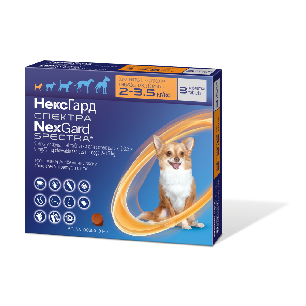 Нексгард Спектра (NexGard Spectra) XS для собак 1.25-3.5 кг (3 таблетки)
