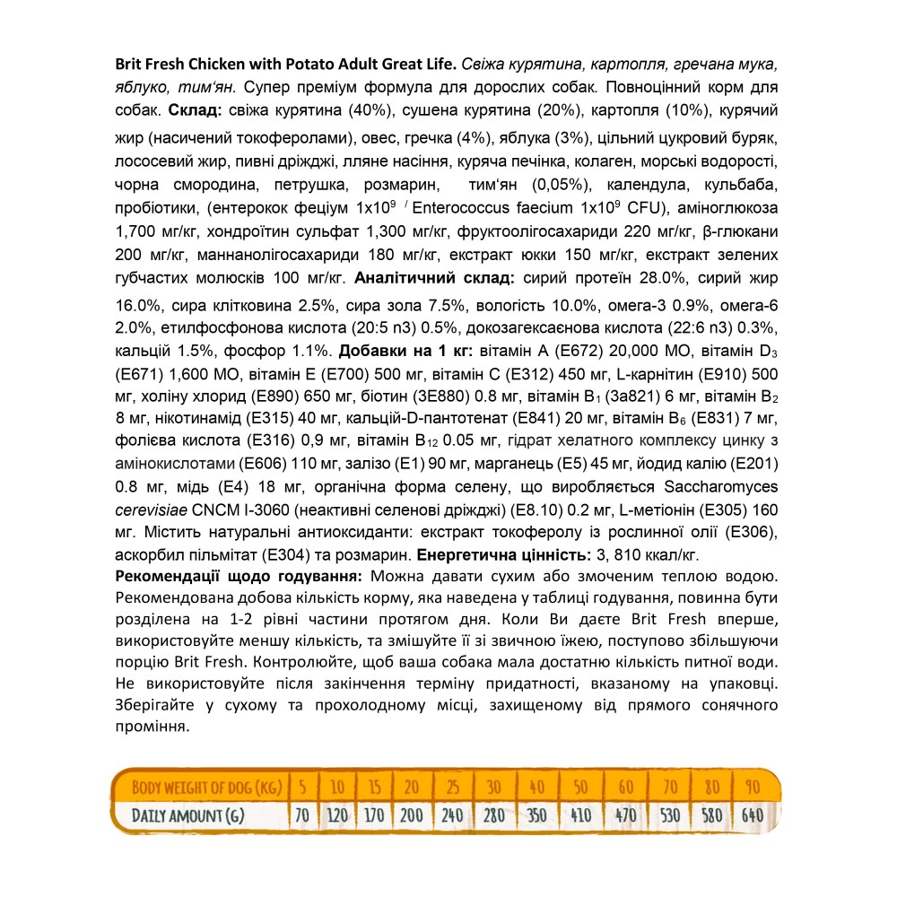 Корм сухий Brit Fresh Chicken/Potato Adult для дорослих собак 12 кг