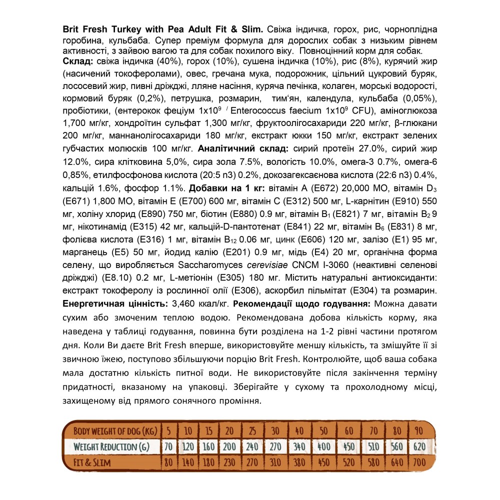 Корм сухий Brit Fresh Turkey/Pea Fit and Slim для собак похилого віку