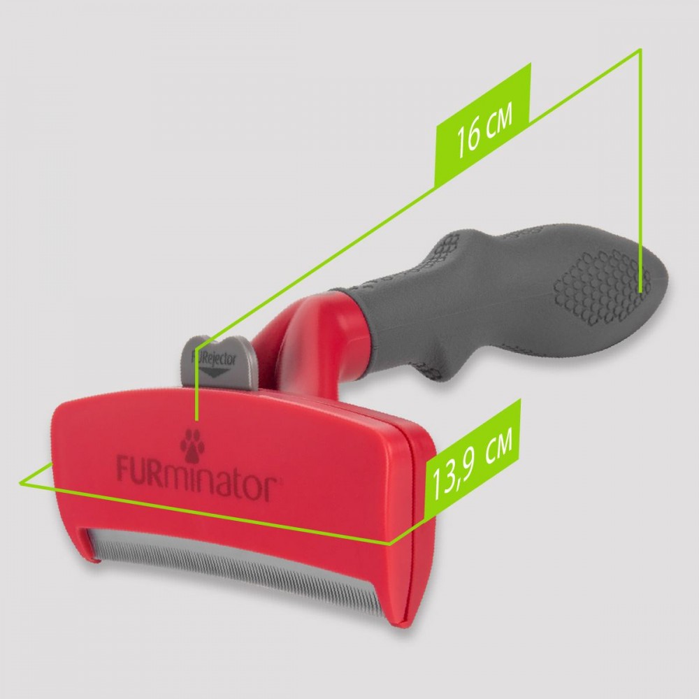 Цей дешеддер для собак спеціально розроблений для видалення підшерстя, що випадає, не пошкоджуючи остьовий волос. Використання фурмінатора значно полегшує грумінг собак, зменшуючи кількість шерсті в домі до 90%. Інструменти для грумінгу від бренду FURminator визнані професіоналами в усьому світі за їхню ергономічність та довговічність.