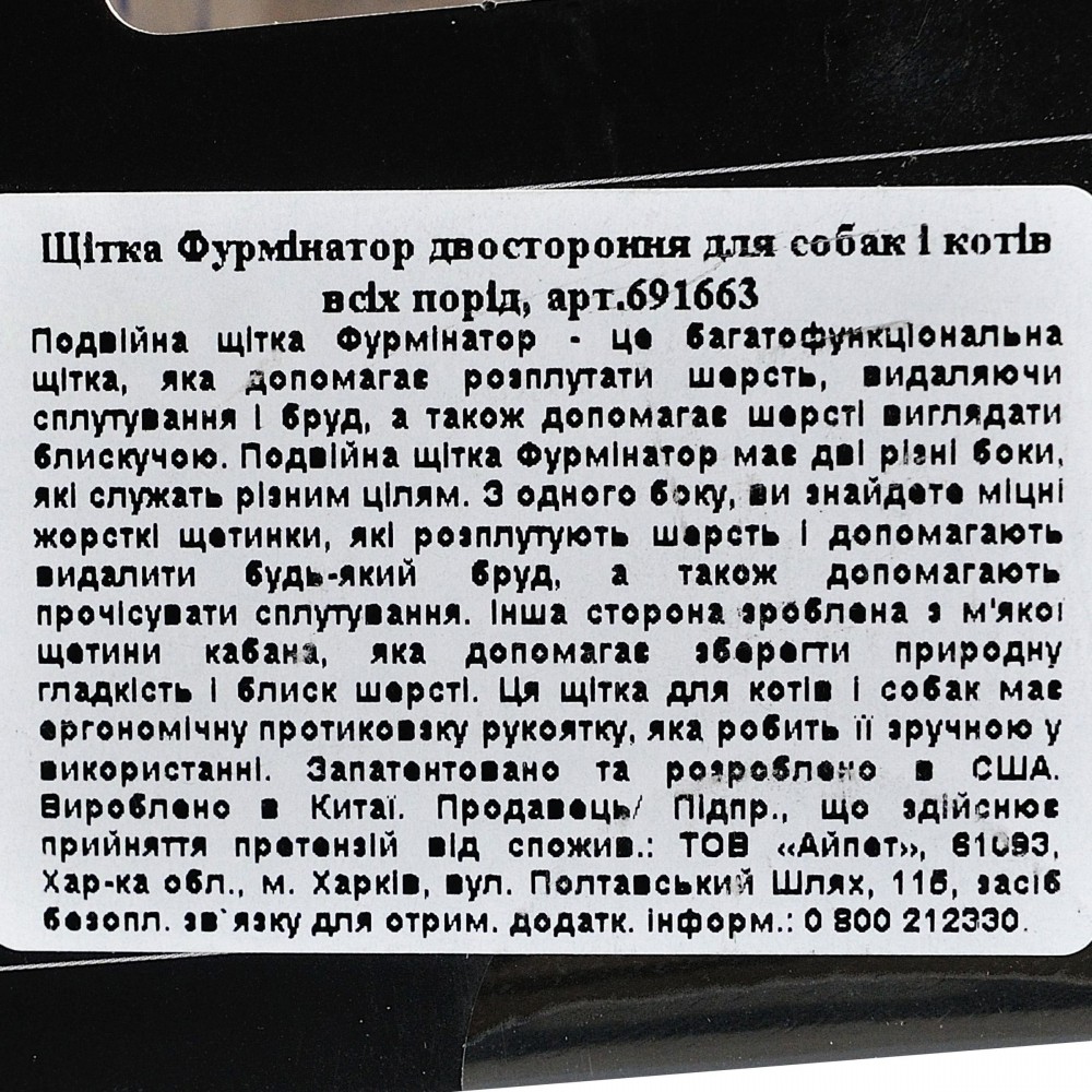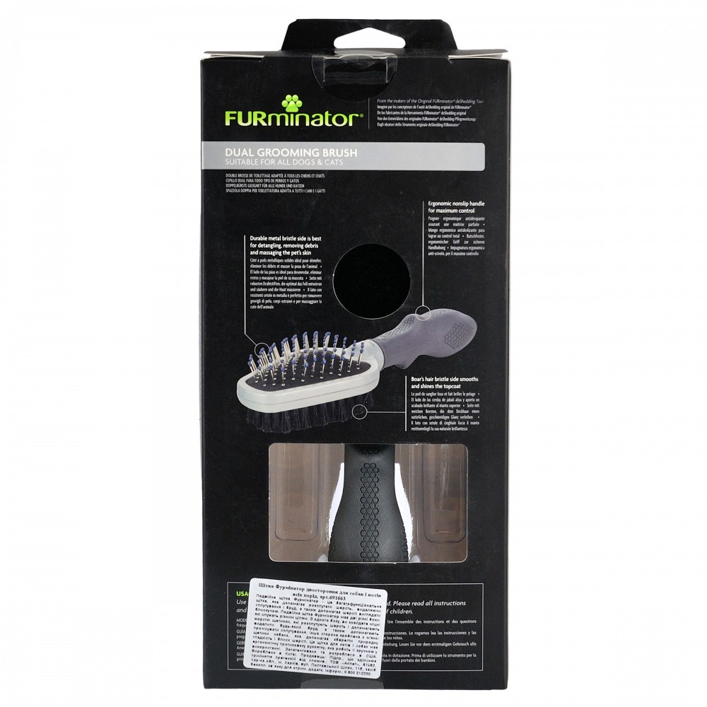 Гребінець-щітка FURminator двостороння — це незамінний інструмент для власників, які прагнуть забезпечити професійний догляд за шерстю котів та собак у домашніх умовах. Цей аксесуар розроблений спеціально для ефективного видалення відмерлого підшерстя та розплутування ковтунів, підходячи для всіх типів шерсті.