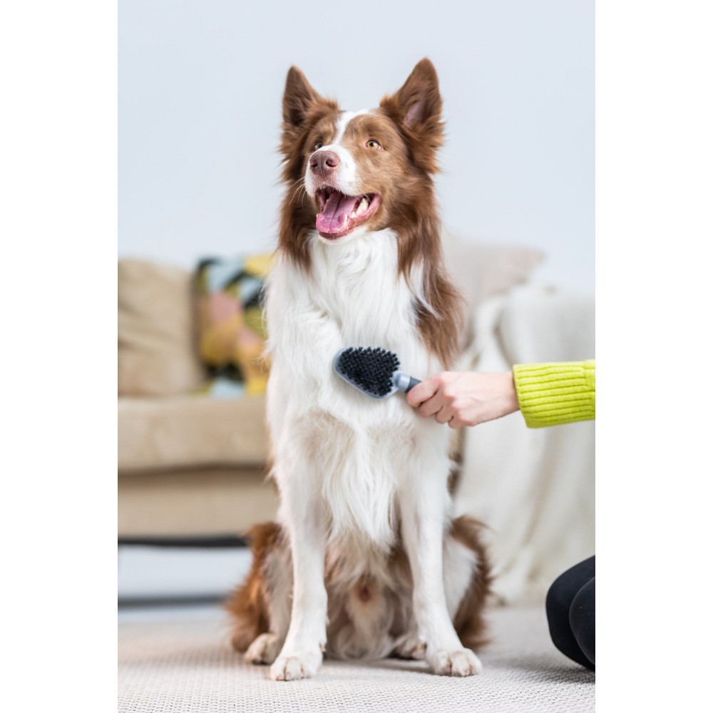 - Універсальність: ідеальна щітка для вичісування шерсті, що підходить як для короткошерстих, так і для довгошерстих порід.