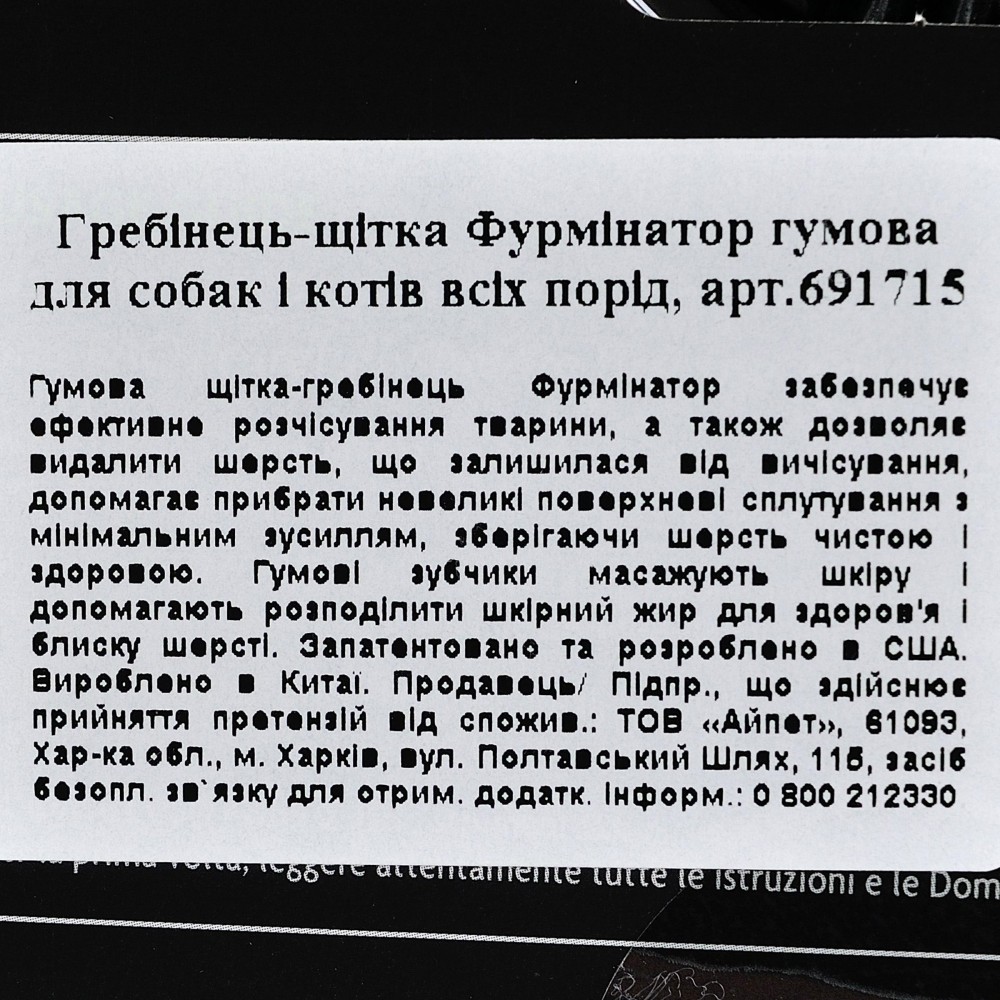 Щітка масажна FURminator для собак та котів гумова