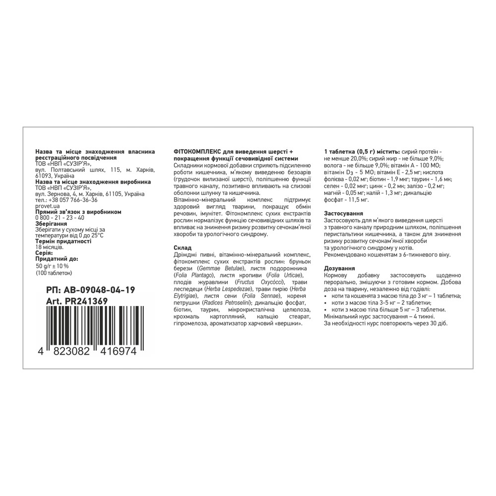 Фітокомплекс Provet ФІТОВИТ для котів для виведення шерсті та здоров'я сечовивідної системи