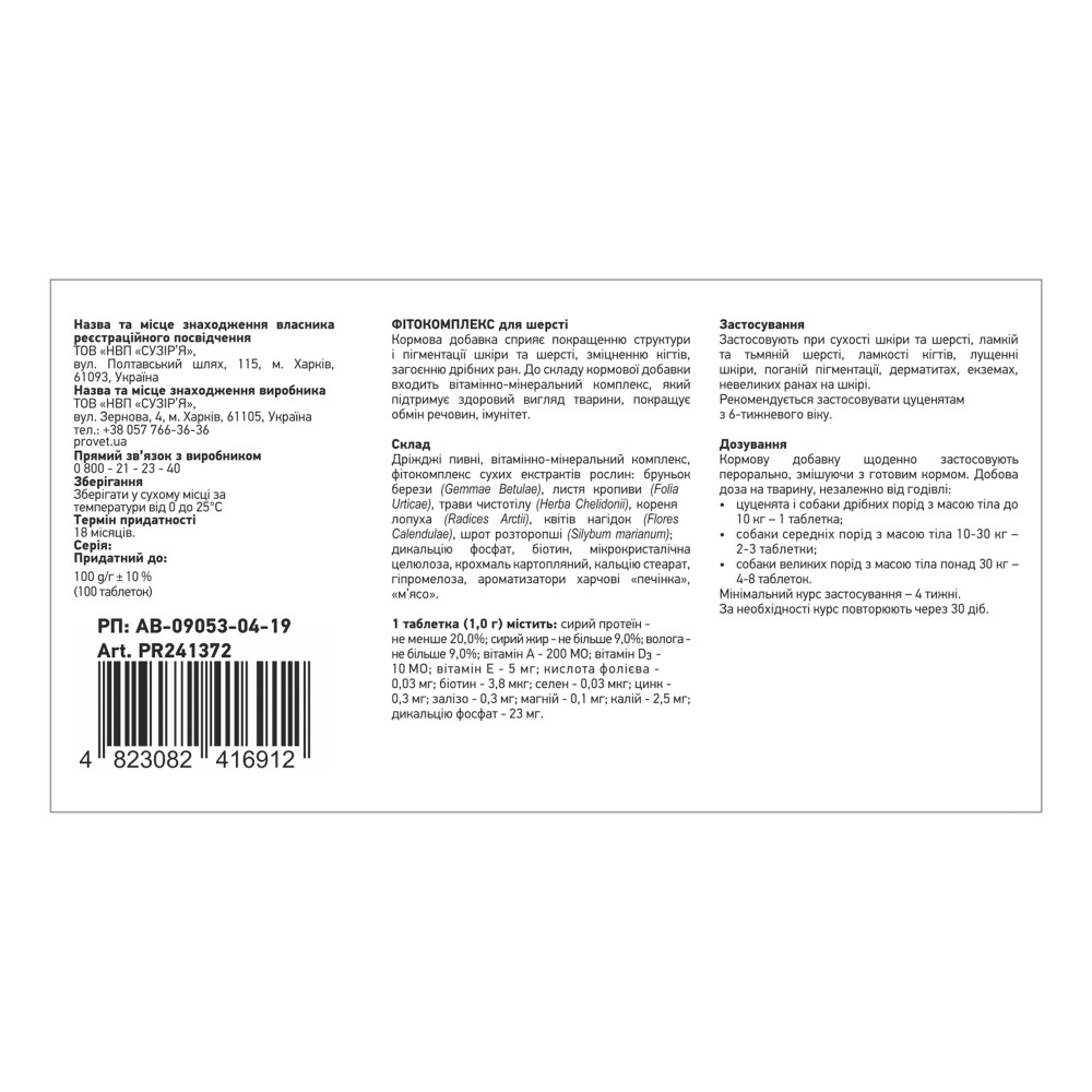 Фітокомплекс Provet ФІТОВИТ для шерсті собак, 100 табл