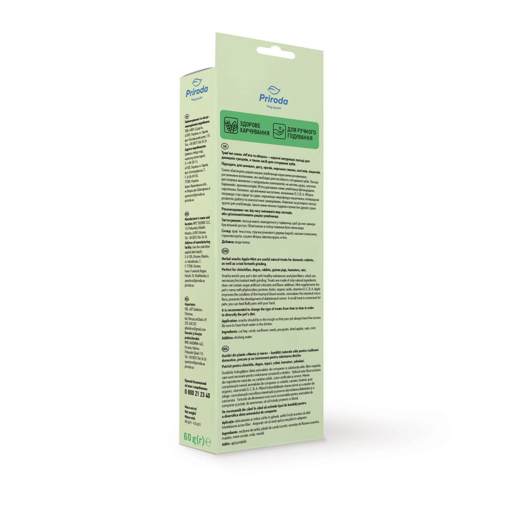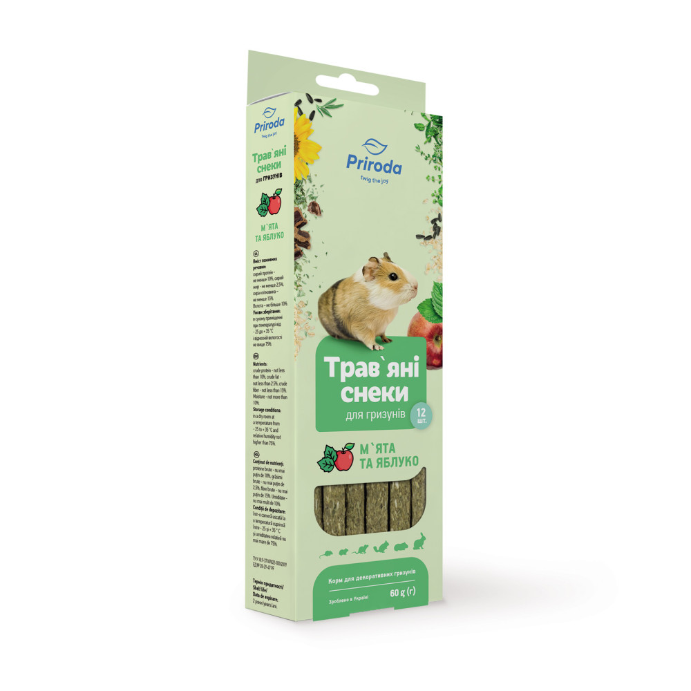 Трав’яні снеки Природа для гризунів м'ята та яблуко 60 г — це ідеальне доповнення до щоденного раціону вашого маленького улюбленця. В асортименті інтернет-магазину Paddington представлені лише якісні ласощі для гризунів, які поєднують у собі користь природи та чудовий смак.