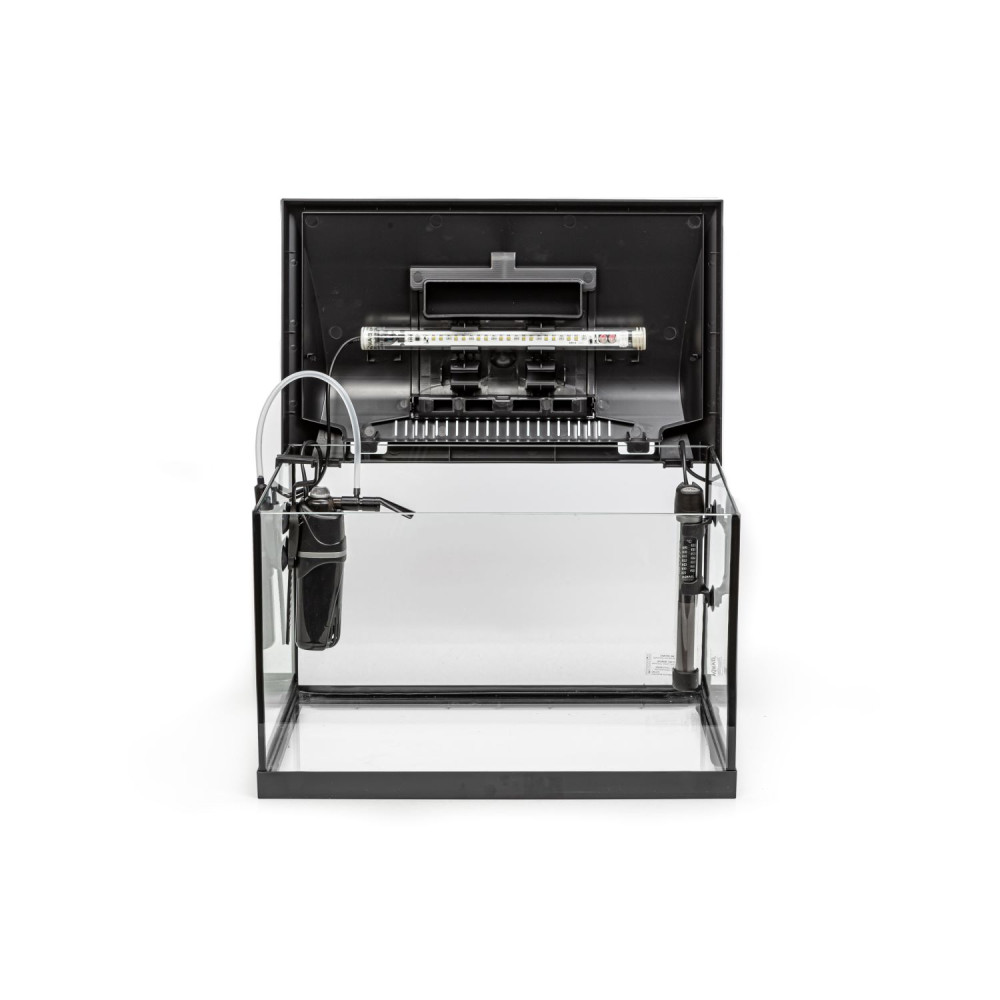 Цей акваріум з обладнанням має класичну прямокутну форму, що дозволяє легко розмістити його в будь-якому інтер'єрі. Головною особливістю моделі є сучасне освітлення для акваріума Leddy Day Night, яке забезпечує оптимальний спектр для росту рослин та комфортного життя мешканців.