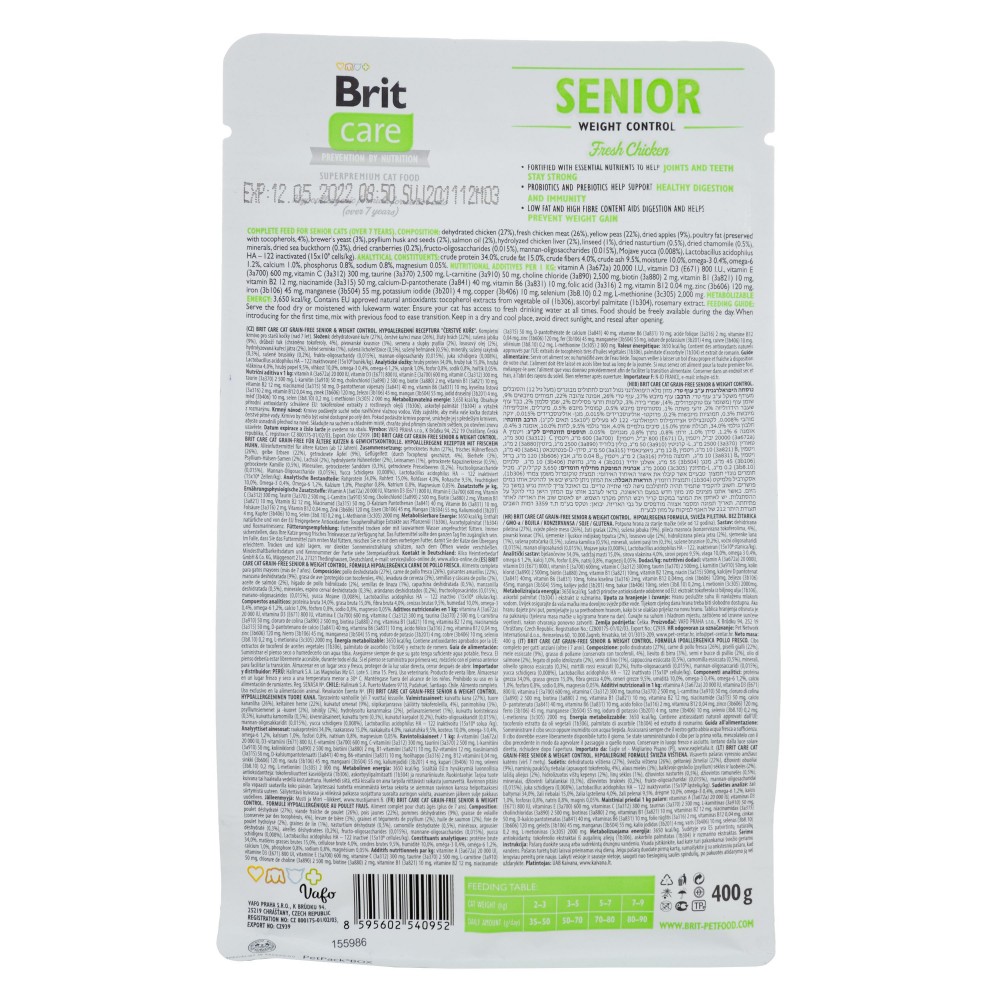 Корм сухий Brit Care Cat Grain Free Senior Weight Control — це збалансоване дієтичне харчування для котів похилого віку, розроблене для підтримки оптимальної ваги та здоров'я вашого улюбленця. В асортименті інтернет-магазину Paddington цей продукт представлений як ідеальне рішення для тварин, що потребують контролю маси тіла.