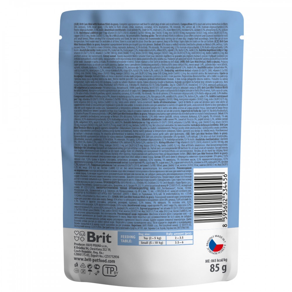 Вологий корм Brit Care Mini для дорослих собак мініатюрних порід — це вишукане частування, створене спеціально для задоволення потреб найменших улюбленців. В асортименті інтернет-магазину Paddington ви знайдете лише найкращі раціони, і цей корм супер преміум класу з ніжним філе дичини в ароматному соусі стане улюбленою стравою вашого собаки.