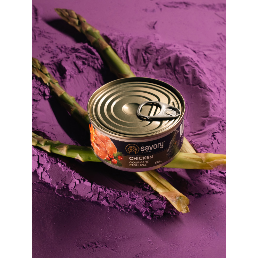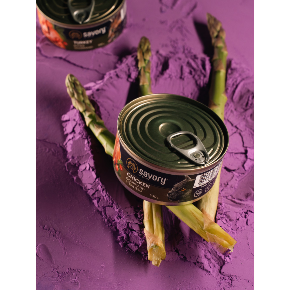 Вологий корм Savory Cat Can Adult Sterilised з куркою для стерилізованих котів, 100 г