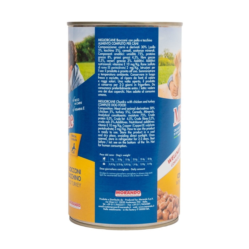 Вологий корм Migliorcane для собак з куркою та індичкою, 1.25 кг