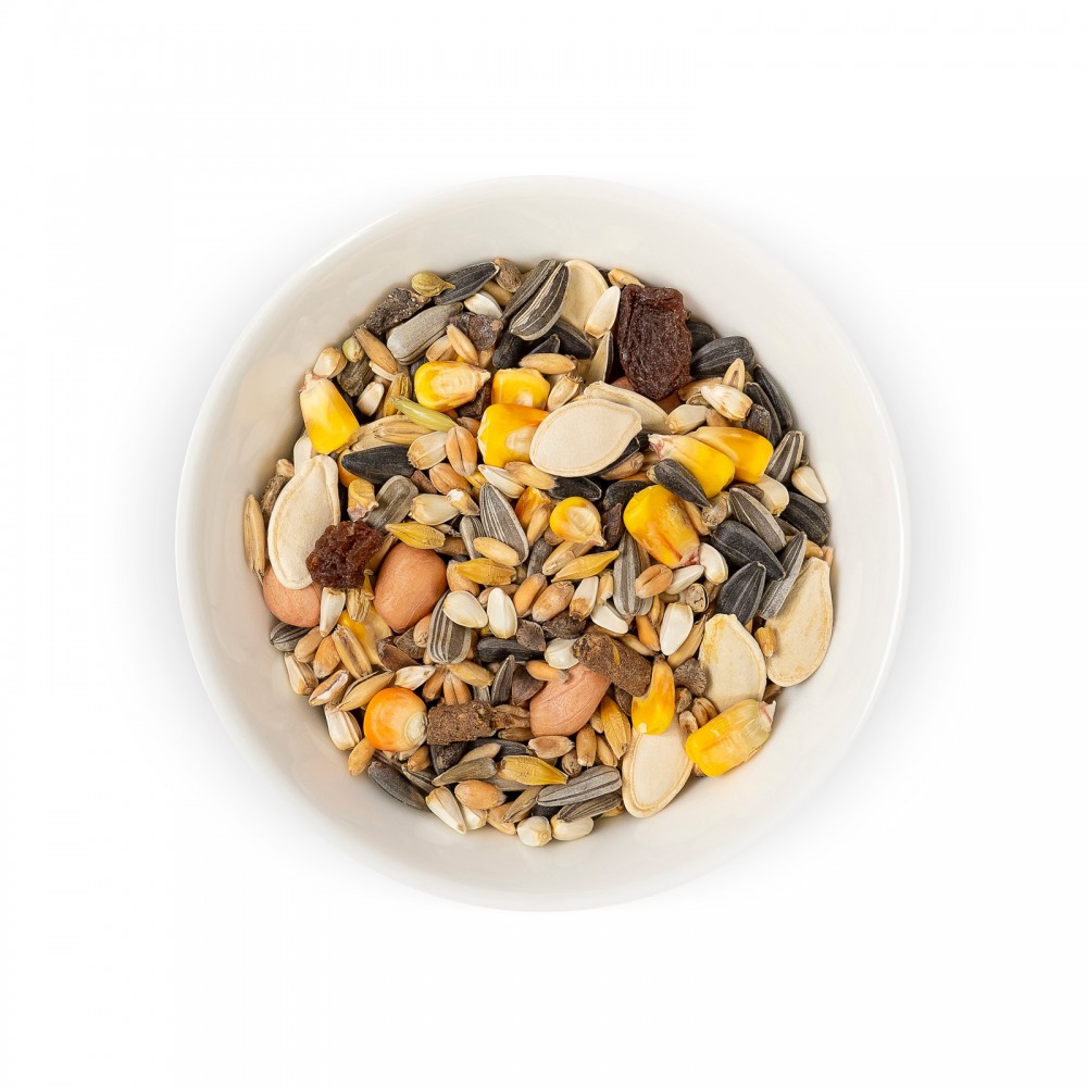 - Збалансований склад: ідеальне поєднання насіння та фруктів.