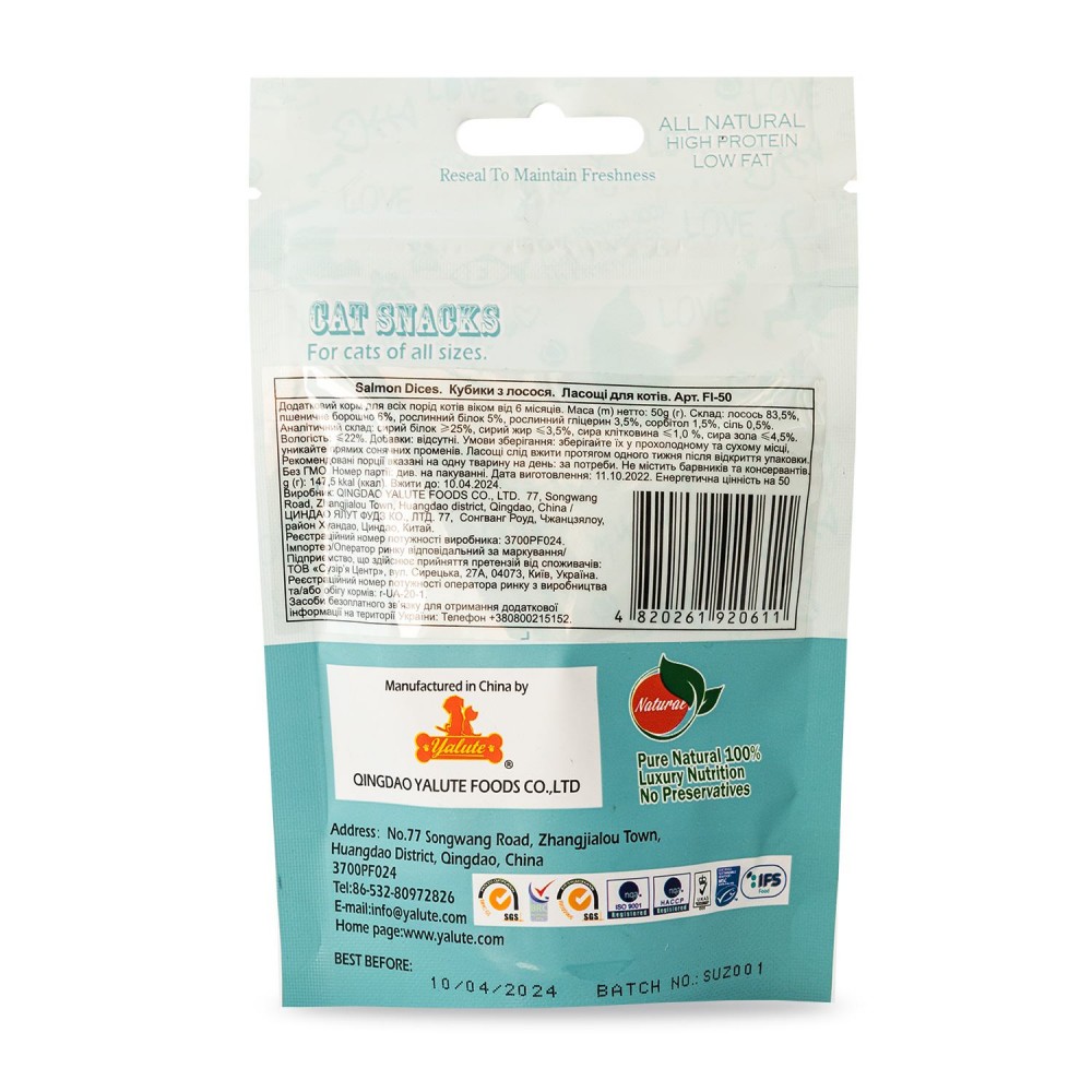 Ласощі Yalute для котів Salmon Dices кубики з лососем 50 г
