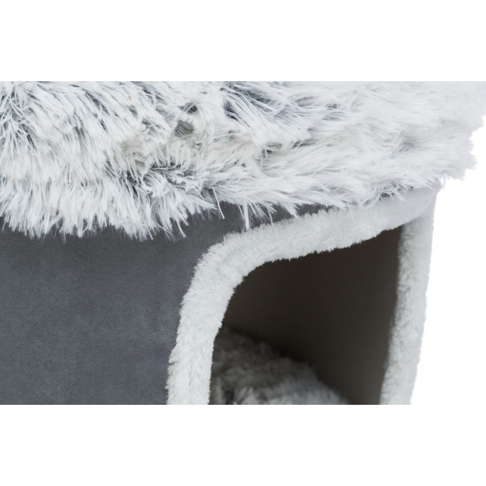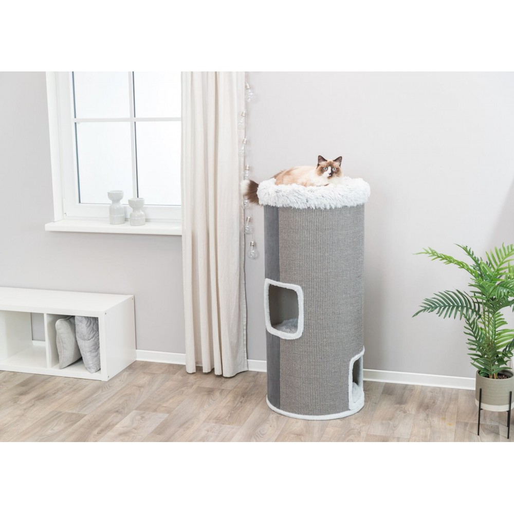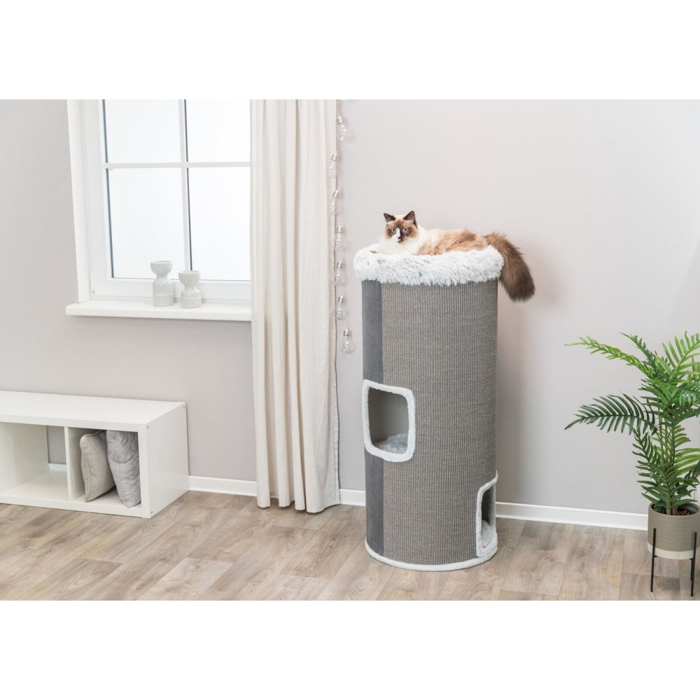 Цей ігровий комплекс для котів висотою 118 см забезпечує повноцінний простір для активності та відпочинку. Сизалева дряпка дозволяє тварині ефективно точити кігті, зберігаючи ваші меблі в безпеці. Будиночок для кота, що входить до конструкції, стане затишним місцем для сну та усамітнення.