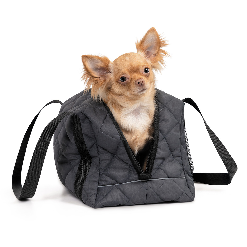 Ця сумка-переноска для собак виготовлена з якісного міксу тканин, що забезпечує довговічність виробу та легкість у догляді. Вона ідеально підходить для транспортування тварин вагою до 8 кг, гарантуючи їм безпеку та затишок під час поїздок до ветеринара або тривалих прогулянок.