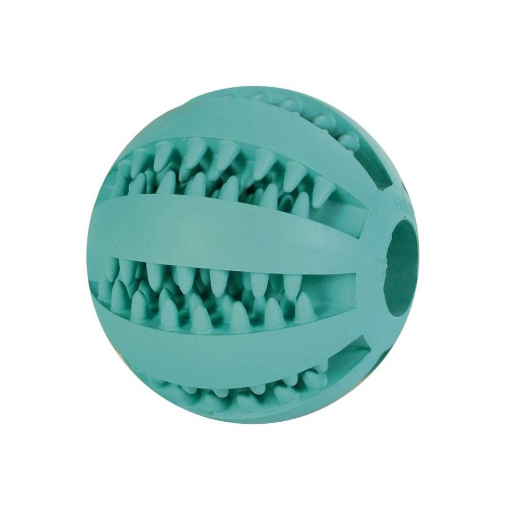Ця гумова іграшка для собак спеціально розроблена для підтримки гігієни ротової порожнини. Спеціальна текстура поверхні м'яча забезпечує ефективний догляд за зубами собак під час гри, м'яко масажуючи ясна та видаляючи зубний наліт. Додатковий аромат м'яти освіжає подих, роблячи процес гри ще приємнішим.