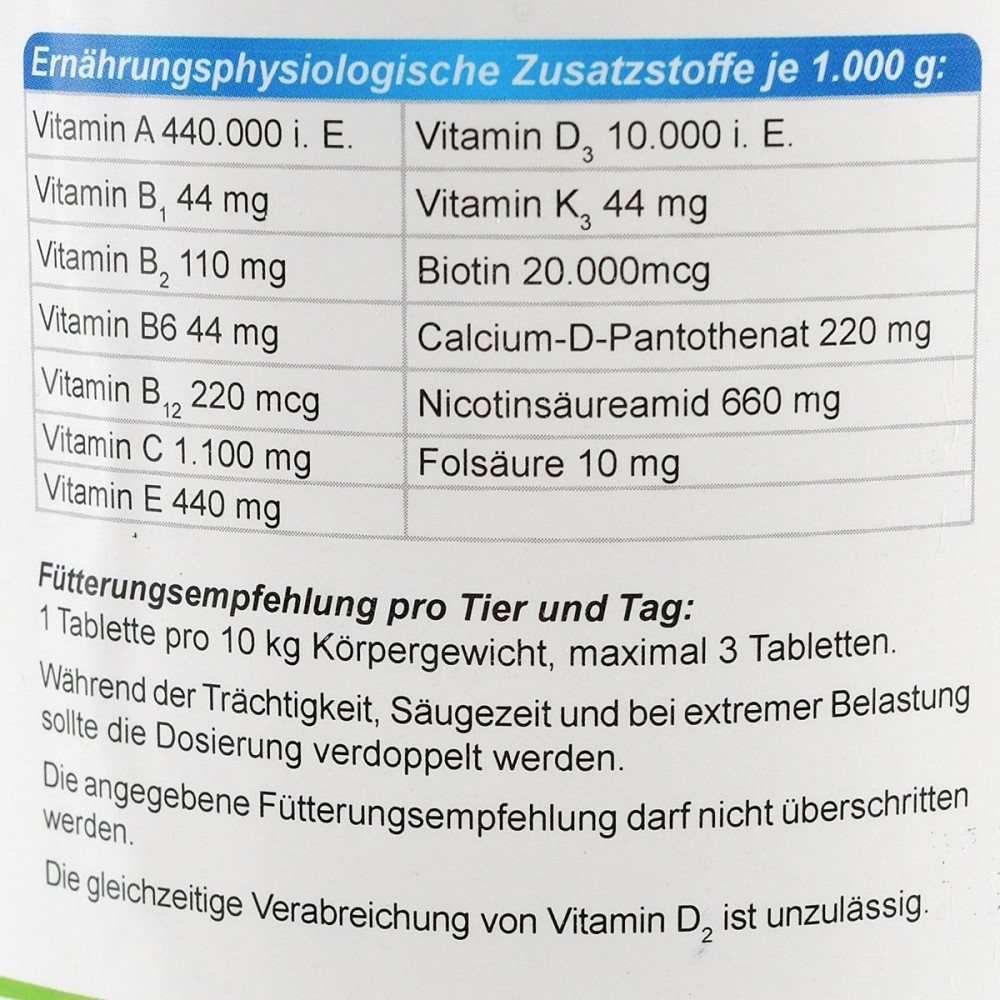 - Німецька якість: сертифіковані німецькі вітаміни для тварин, що гарантують безпеку.