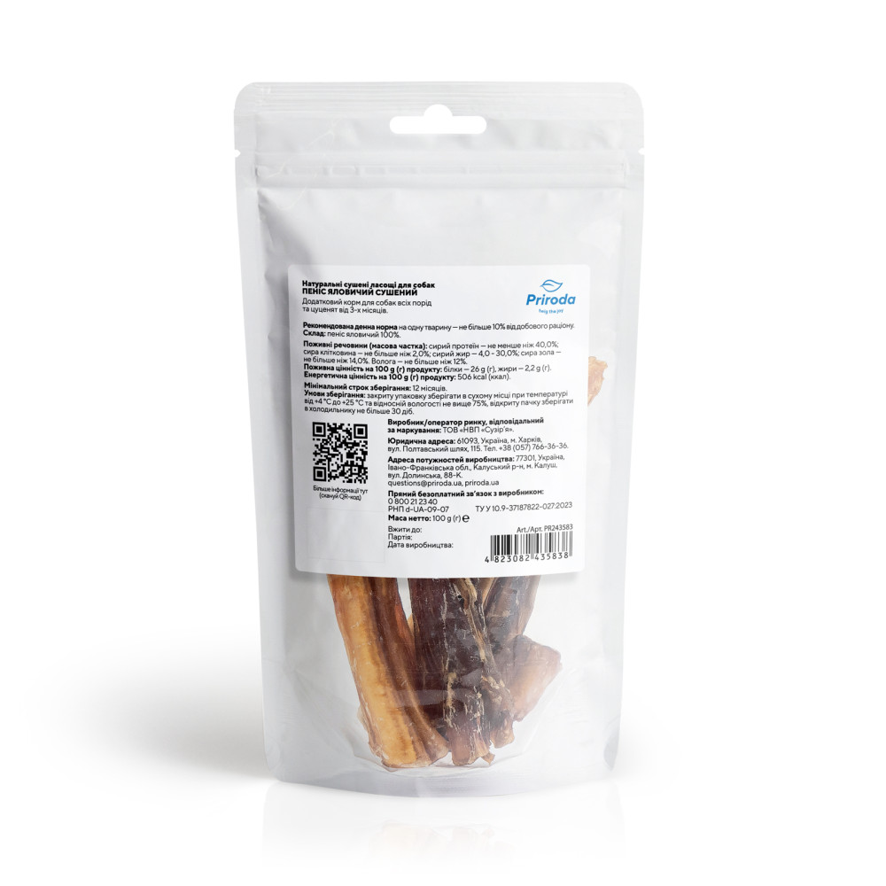 Натуральні сушені ласощі для собак Пеніс яловичий сушений 100 г від відомого бренду Природа — це ідеальний вибір для дбайливих власників, які шукають корисне доповнення до раціону свого улюбленця. В асортименті інтернет-магазину Paddington ці ласощі для тривалого жування займають особливе місце завдяки своїй високій якості та натуральному складу.