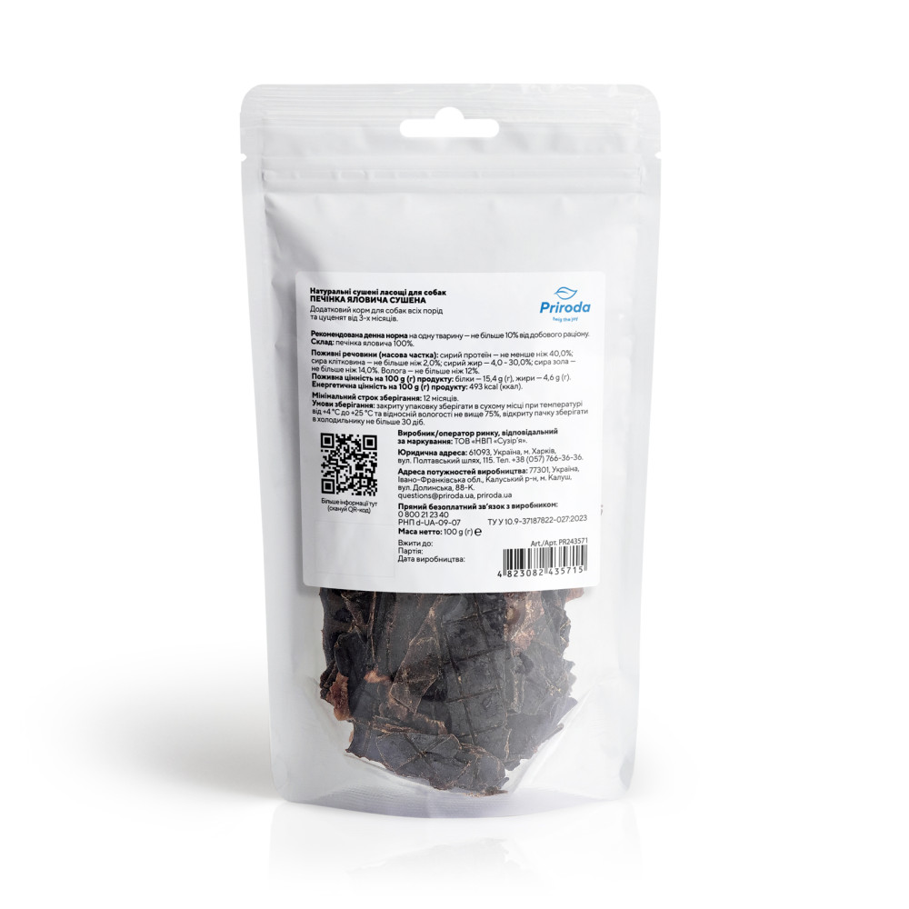 Натуральні сушені ласощі для собак Печінка яловича сушена 100 г від бренду Природа — це ідеальний вибір для дбайливих власників, які шукають якісне та корисне частування для свого улюбленця. В асортименті інтернет-магазину Paddington ці сушені м'ясні делікатеси займають особливе місце завдяки своїй натуральності та високій харчовій цінності.