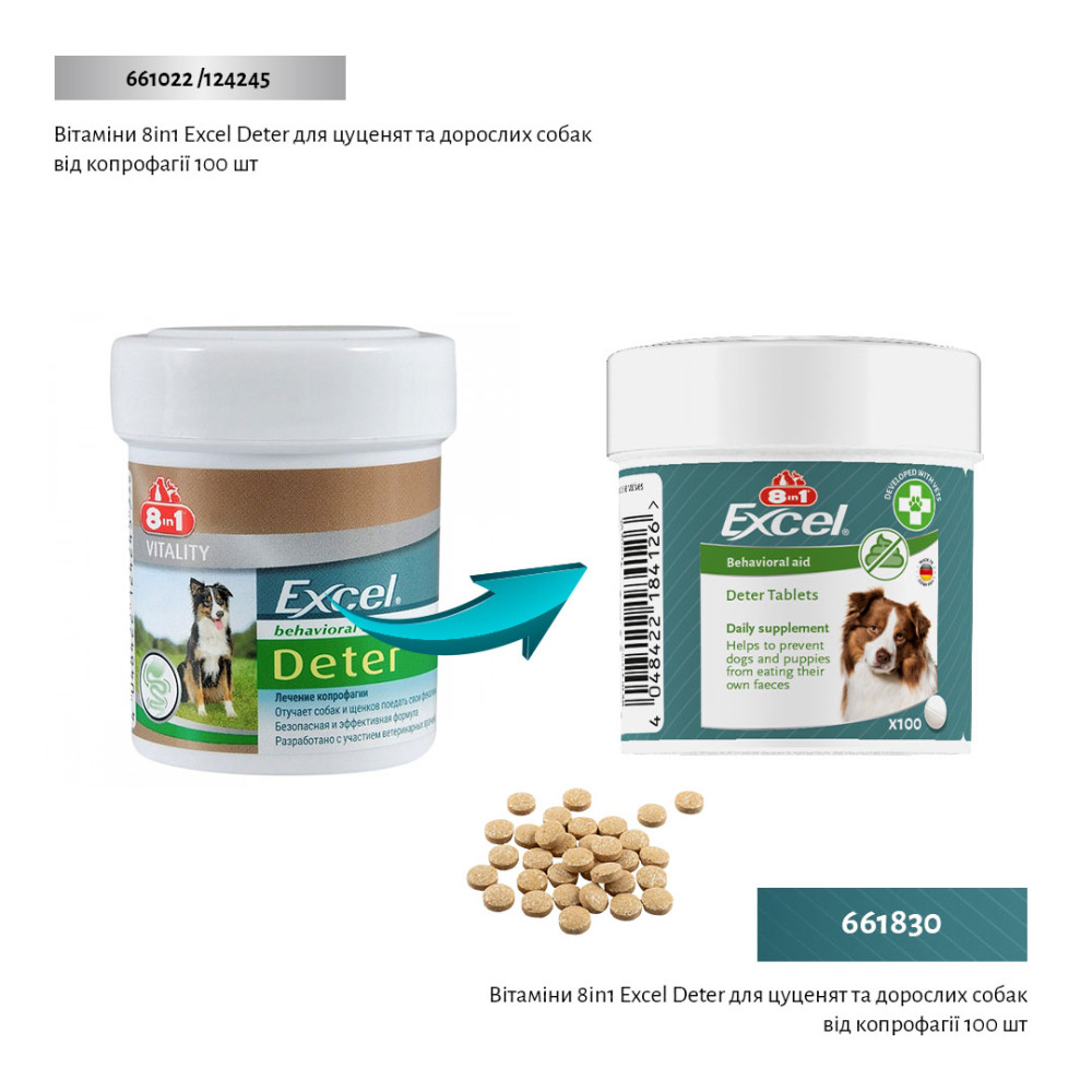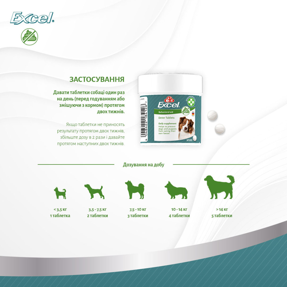 Вітаміни 8in1 Excel Deter для собак від копрофагії, 100 шт