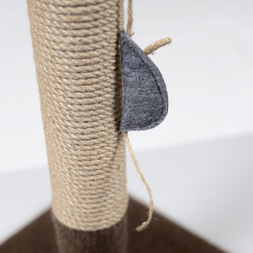 - Натуральний матеріал: Стовпчик обмотаний міцним джутом, який ідеально підходить для природного догляду за кігтями вашого кота.