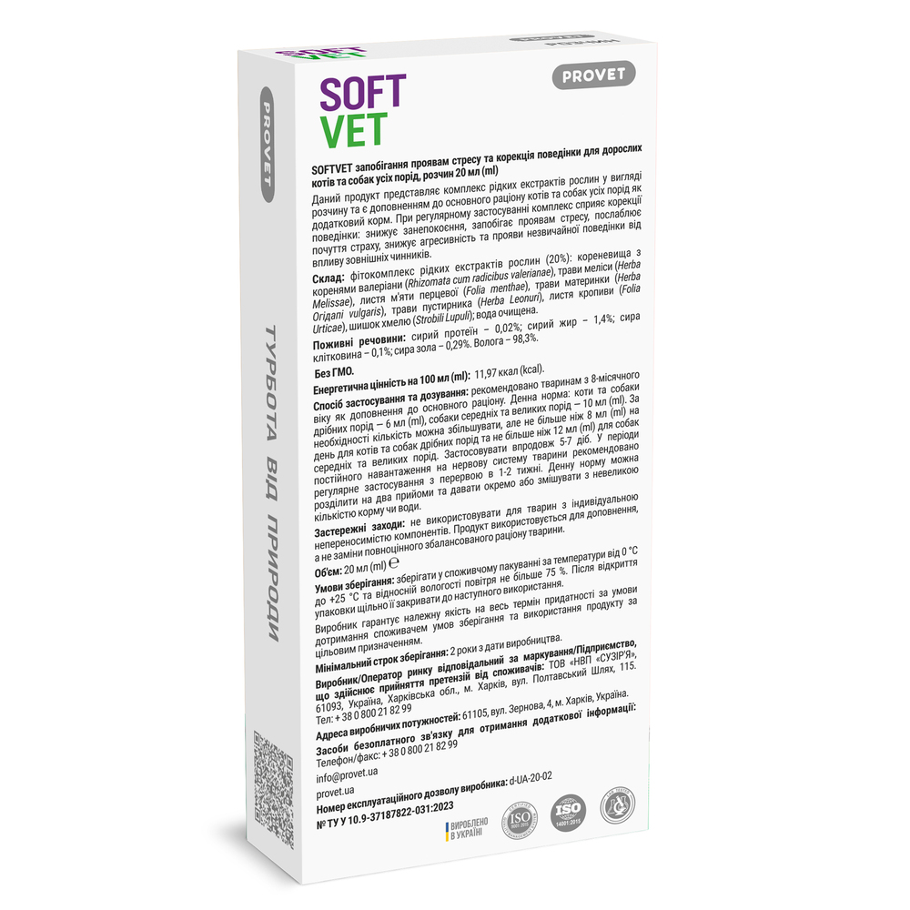 Фітокомплекс Provet SOFTVET антистресова дія для котів та собак 20 мл