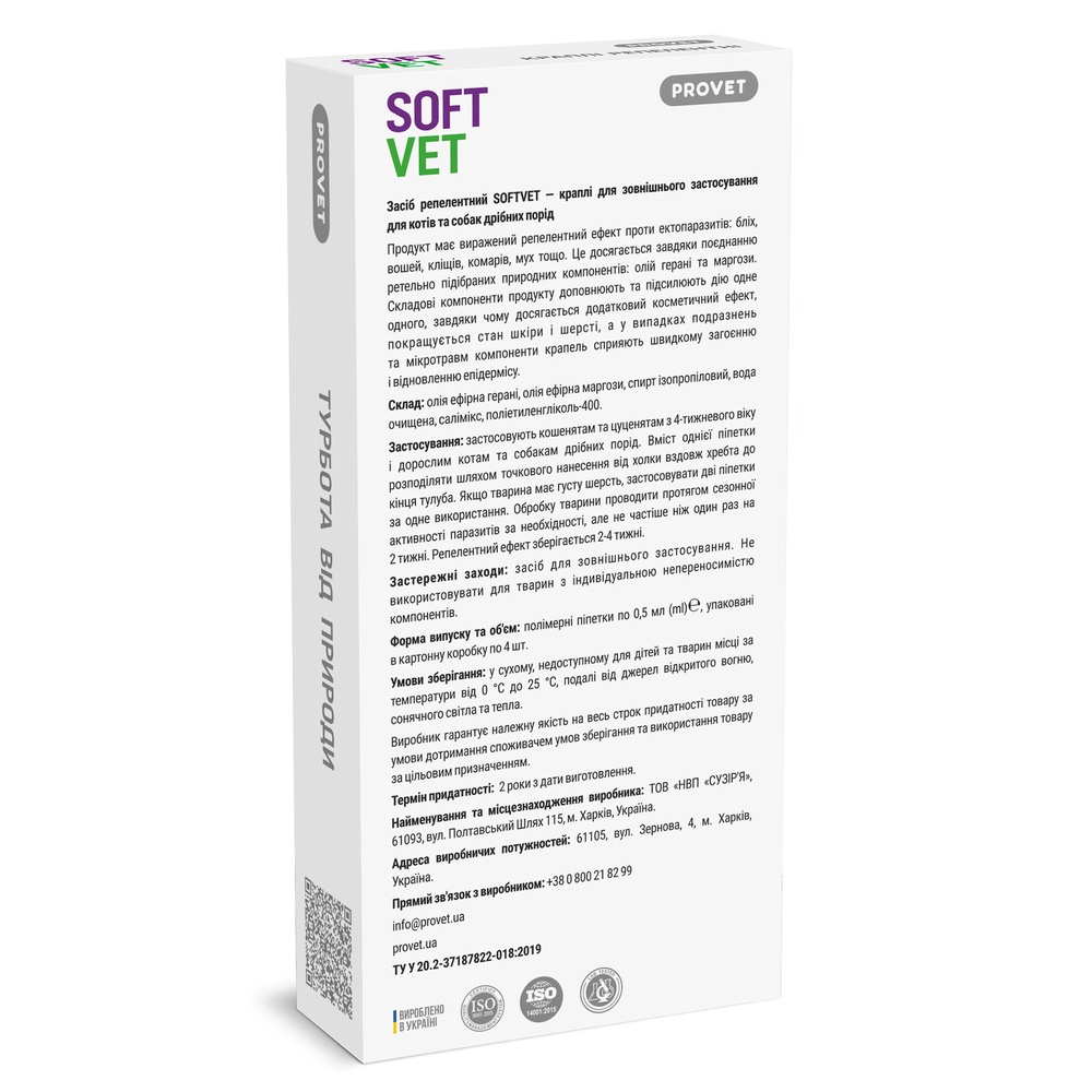 Краплі Provet SOFTVET для котів та собак дрібних порід