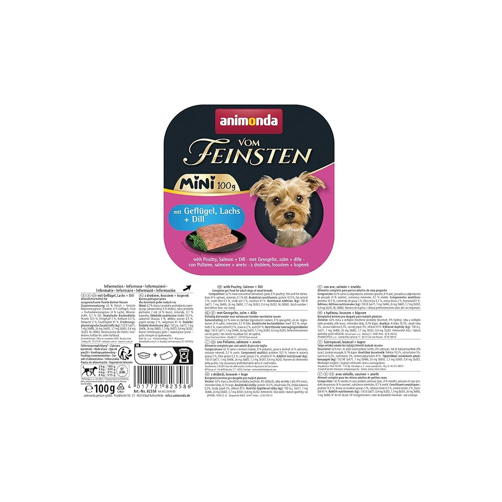 Вологий корм Animonda Vom Feinsten Adult Mini з птицею та лососем — це вишуканий паштет для собак, створений спеціально для задоволення потреб дорослих улюбленців мініатюрних порід. В асортименті інтернет-магазину Paddington ви знайдете лише найкращі товари для ваших чотирилапих друзів.
