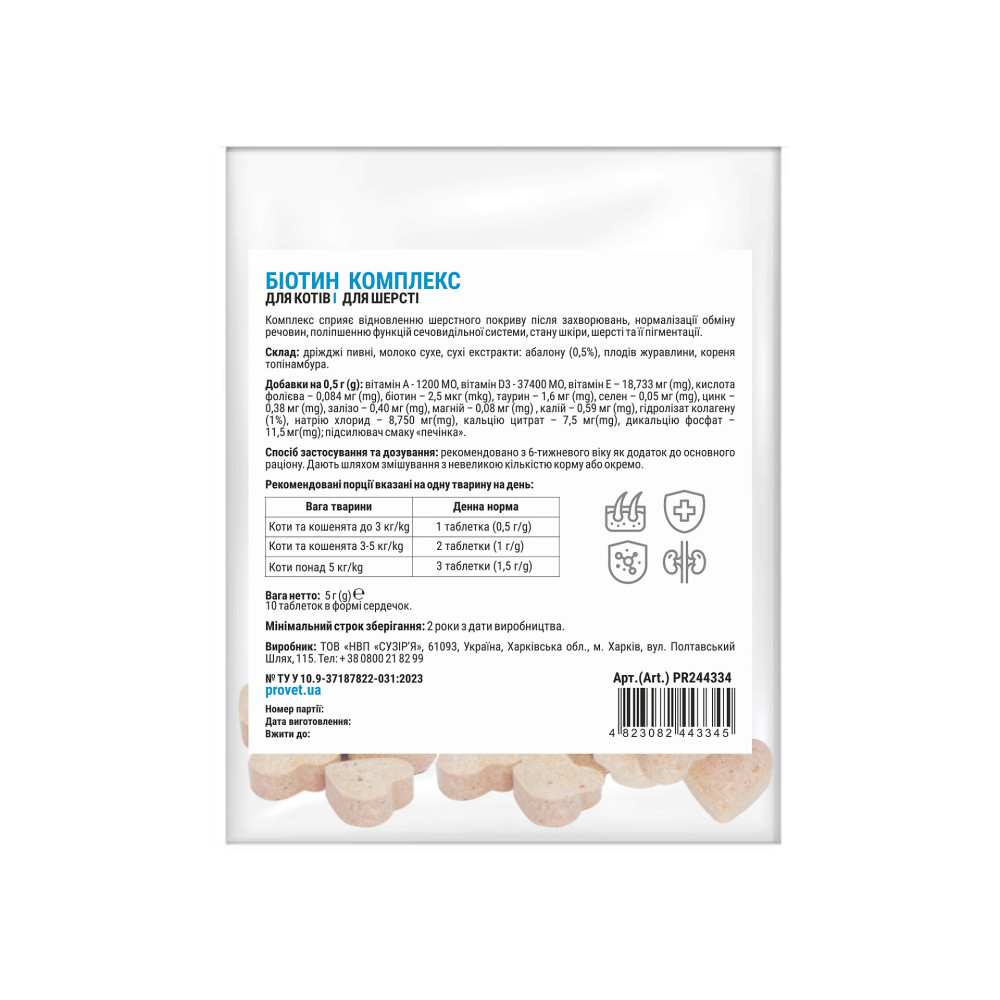 Вітаміни Provet PROFILINE БІОТИН для шерсті котів